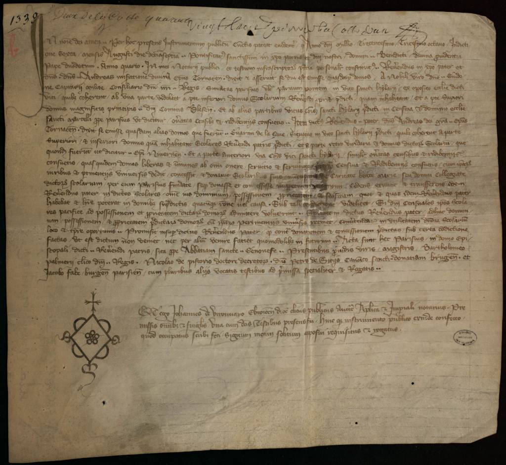 Donation de maisons rue Saint-Hilaire aux écoliers lombards, 17 août 1338,
