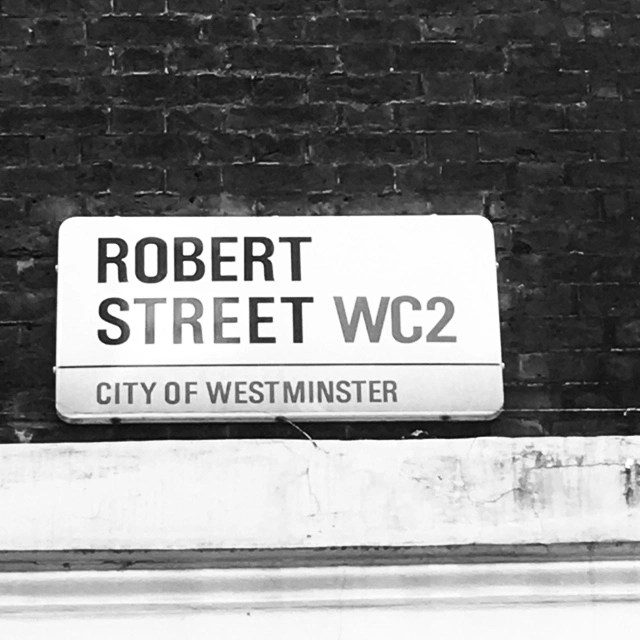 C’est une rue parallèle au Strand, entre Villiers Street et Adam Street. Avant-hier, nous vous avons parlé de cette rue qui commença par s’appeler Duke Street. Vous souvenez-vous ? « George Villiers Duke of Buckingham » ! Mais c’est en fait un peu plus compliqué que cela… John Adam Street est l’union de deux rues préexistantes, situées dans le prolongement l’une de l’autre : la susnommée Duke Street et une certaine John Street. John Street est à relier avec deux autres rues : la susnommée Adam Street et une certaine Robert Street (photographie de gauche), qui existe encore. Vous suivez ? John Street, Robert Street et Adam Street font référence à John et Robert Adam, tout comme George Street, Villiers Street, Duke Street, Of Alley et Buckingham Street faisaient référence à George Villiers, duc de Buckingham. Dans le même quartier, on a utilisé cette méthode assez rare qui consiste à donner des prénoms à des rues, pour former un nom complet, en les associant aux rues voisines.