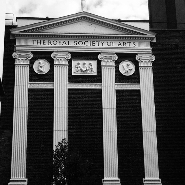 En plus de quelques demeures du côté du Savoy (photographie du milieu), une autre relique de The Adelphi se trouve sur l’actuelle John Adam Street, du côté du Strand : c’est le siège de la Royal Society for Arts, Manufactures and Commerce, fondée en 1754 sous le nom de Society for the Encouragment of Arts, Manufactures and Commerce, et plus connue sous le nom de Royal Society of Arts (RSA) (photographie de droite : la façade qui donne du côté du Strand et qui est plus moderne). Il ne faut la confondre ni avec la Royal Academy of Arts, qui ne s’intéresse qu’aux arts, ni avec la Royal Society, beaucoup plus ancienne (1660) et qui s’intéresse aux sciences. La RSA est une société savante avec un champ d’étude beaucoup plus large, de l’art aux sciences, en passant par l’industrie, la citoyenneté et l’écologie. Selon l’Oxford English Dictionary, le terme sustainability (durabilité) aurait d’ailleurs été utilisé pour la première fois au sein de l’institution en 1980.