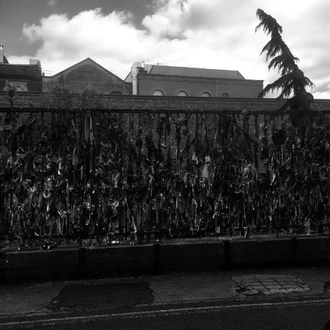 Mais ces femmes, dites de petite vertu, posaient un problème. De par leurs activités, leur taux de mortalité était beaucoup plus élevé que celui de la majorité des femmes de l’époque, pourtant déjà très haut. Or, leur profession leur interdisait d’être enterrées en bonnes chrétiennes. Un des évêques de Winchester décida donc d’ouvrir un cimetière non consacré dans sa Liberty of the Clink. La première mention date de 1598, mais il est certainement beaucoup plus ancien. Vers 1769, on commença également à y enterrer les miséreux du quartier, qui étaient fort nombreux. Il fut finalement fermé en 1853… et redécouvert, 150 ans plus tard, lors des travaux de la Jubilee Line. Les archéologues du Museum of London estiment que 15 000 personnes y sont inhumées, souvent empilées les unes sur les autres. Cross Bones, situé sur Redcross Way, est devenu aujourd’hui un espacé mémoriel, géré par une association. La grille est encombrée de rubans, de messages, de fleurs, hommages des habitants d’aujourd’hui aux habitants d’hier (photographie de droite).