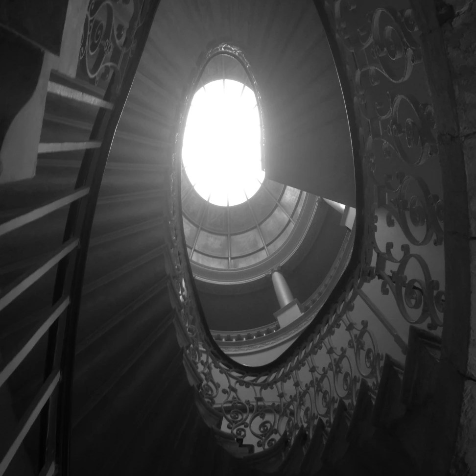 L’une des pièces maitresses de la demeure n’est autre que l’escalier ovale qui s’envole vers l’étage des chambres. Orné d’une riche balustrade en fer forgé, il est éclairé par une dôme, lui-aussi ovale, décoré de grisailles, et couronnant une galerie à colonnade qui dessert les pièces réservées à la famille (photographie de droite).