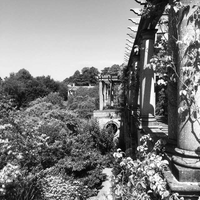 Une partie des sublimes jardins constitués par Mawson, et notamment l’immense pergola, fut offerte à la Cité de Londres et est aujourd’hui ouverte au public sous le nom de The Hill Garden and Pergola (photographie de droite).