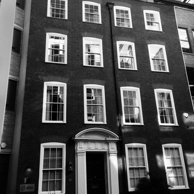 Dans Philpot Lane, on trouve une autre curiosité. En revenant du côté de Fenchurch Street, une arche donne accès à Brabant Court, une petite impasse où les fumeurs ne sont visiblement pas les bienvenus. Là, on tombe sur une magnifique demeure géorgienne, c’est-à-dire de l’époque des rois George, entre 1714 et 1830 (photographie de droite). Elle est en fait un peu plus ancienne, puisqu’elle date de 1710. Trois siècles plus tard, elle a été entièrement restaurée par l’architecte Damien D’Arcy, pour servir de vitrine à Marlin Apartments, une agence de location d’appartements de luxe. Le décor intérieur, signé par Jackie McWeeney, reprend les canons du début du XVIIIe siècle, avec des boiseries restaurées et des meubles d’époque. S’il n’est pas possible de la visiter, on peut tout de même voir des photographies de l’intérieur sur le site internet de la designer. En 2013, le projet a d’ailleurs été lauréat du City Heritage Award.