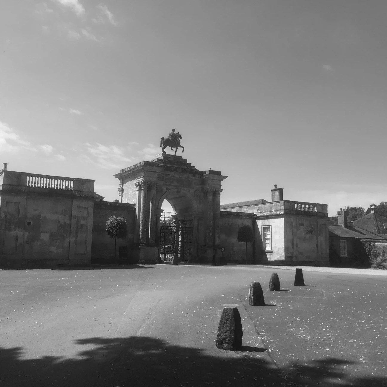 La troisième et dernière campagne de travaux survint un siècle plus tard, en 1801, à l’époque de George Herbert, le 11e comte (1759-1827). Il fit appel à James Wyatt (1746-1813, arsenal de Woolwich, Frogmore House, restauration du château de Windsor). Wyatt modernisa la demeure, notamment en reconstruisant la façade Nord et en y déplaçant l’entrée principale (photographie de droite, en haut). Il aménagea une nouvelle cour d’honneur, marquée par un haut pavillon de style néogothique. Dans l’axe, il relocalisa l’arc de triomphe construit par sir William Chambers (1723-1796, Somerset House, Kew Gardens), vers 1760, pour servir d’entrée au domaine (photographie de gauche, en bas). Mêlant colonnes doriques et corinthiennes, il supporte une imposante statue de l’empereur Marc Aurèle. À l’intérieur de Wilton House, Wyatt éleva également des galeries de circulation, sur deux niveaux, tout autour de la cour. Les Cloisters reliaient ainsi plus commodément les différents appartements et servaient de lieux d’exposition pour la sublime collection de sculptures des comtes de Pembroke. Signalons notamment la statue de William Shakespeare, sculptée par William Kent, qui accueille les visiteurs dans le nouveau vestibule. Après la mort de l’architecte en 1813, c’est son neveu Jeffry Wyatville (1766-1840, reconstruction du château de Windsor pour Georges IV) qui prit la suite. C’est peut-être lui qui transforma l’unique salle de bain du rez-de-chaussée en salle à manger pour le petit-déjeuner, à la demande de la seconde épouse du 11e comte. Elle n’était autre que la comtesse Catherine Vorontsov (1784-1856), fille de l’ambassadeur de Russie au Royaume-Uni et nièce de la princesse Dachkov, qui fut la grande amie de l’impératrice Catherine II. C’est ainsi que s’acheva la reconstruction de Wilton House. Elle n’a guère changé depuis.