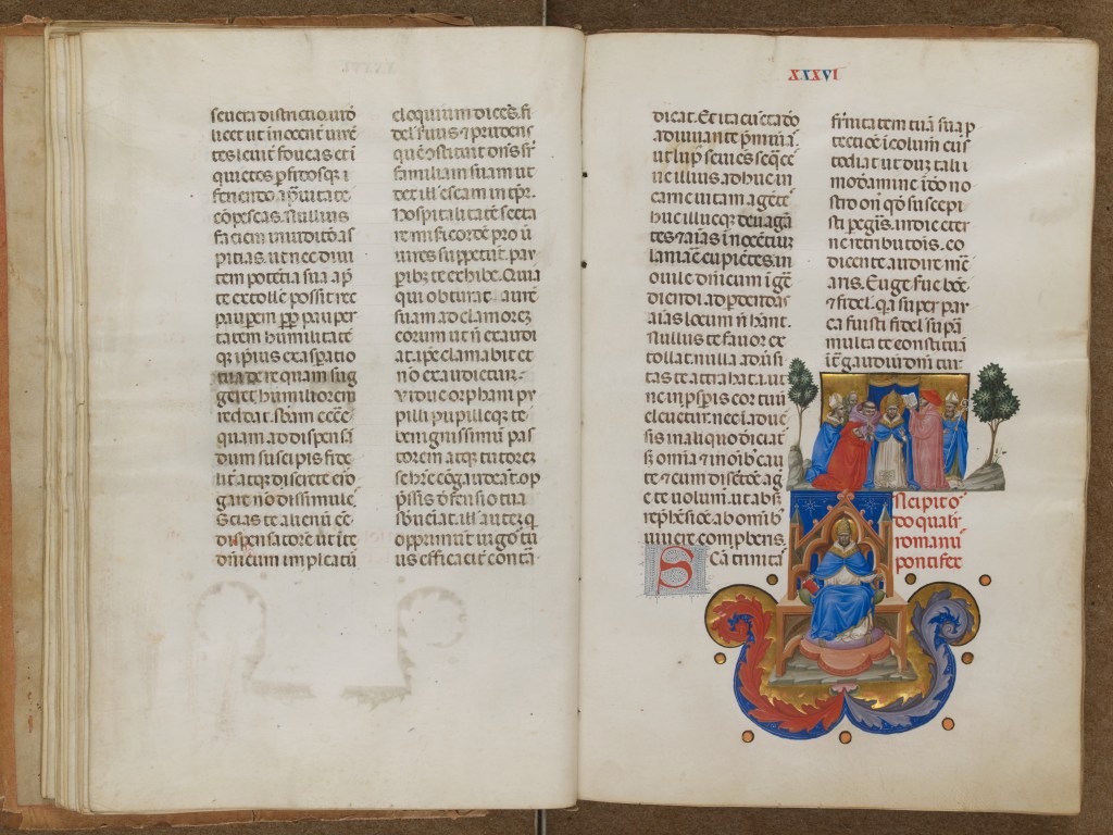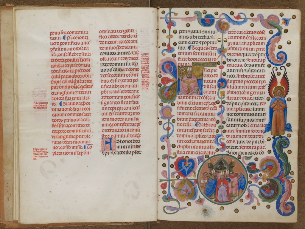 Lorsqu’il prit ses fonctions de chancelier du diocèse d’Autun en juillet 2002, Mgr Pierre Calimé commença par inspecter le contenu de l’armoire que tout évêché se devait de posséder pour conserver « avec le plus grand soin les documents à garder secrets » (CIC/1983, C. 489). Parmi les documents, un objet scellé portait une fiche écrite au feutre rouge : « ne pas ouvrir ». Un prédécesseur avait confié au nouveau chancelier que l’objet en question avait été « probablement acheté sur un marché aux puces de la région d’Autun » (Art de l’enluminure, n°35, décembre 2010, p. 2), et qu’il n’avait pas bougé de cette armoire depuis des décennies. Comme souvent avec les grandes découvertes, la curiosité l’emporta finalement : en septembre 2007, Mgr Calimé passa outre l’avertissement et découvrit un magnifique manuscrit bolonais du XIVe siècle, un pontifical réalisé vers 1330-1350.