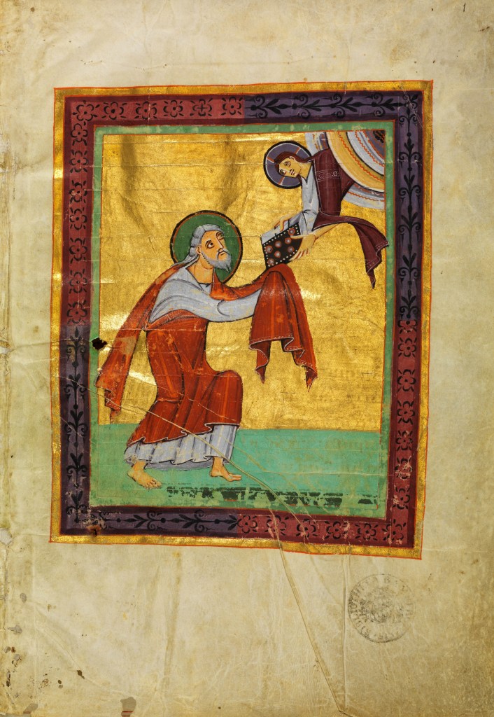 Apocalypse de Bamberg, Staatsbibliothek Bamberg, Ms. Bibl.140, f. 1 r. avec miniature, Reichenau, c. 1010 (106 feuillets de parchemin illustrés, 29,5 x 20,5 cm)