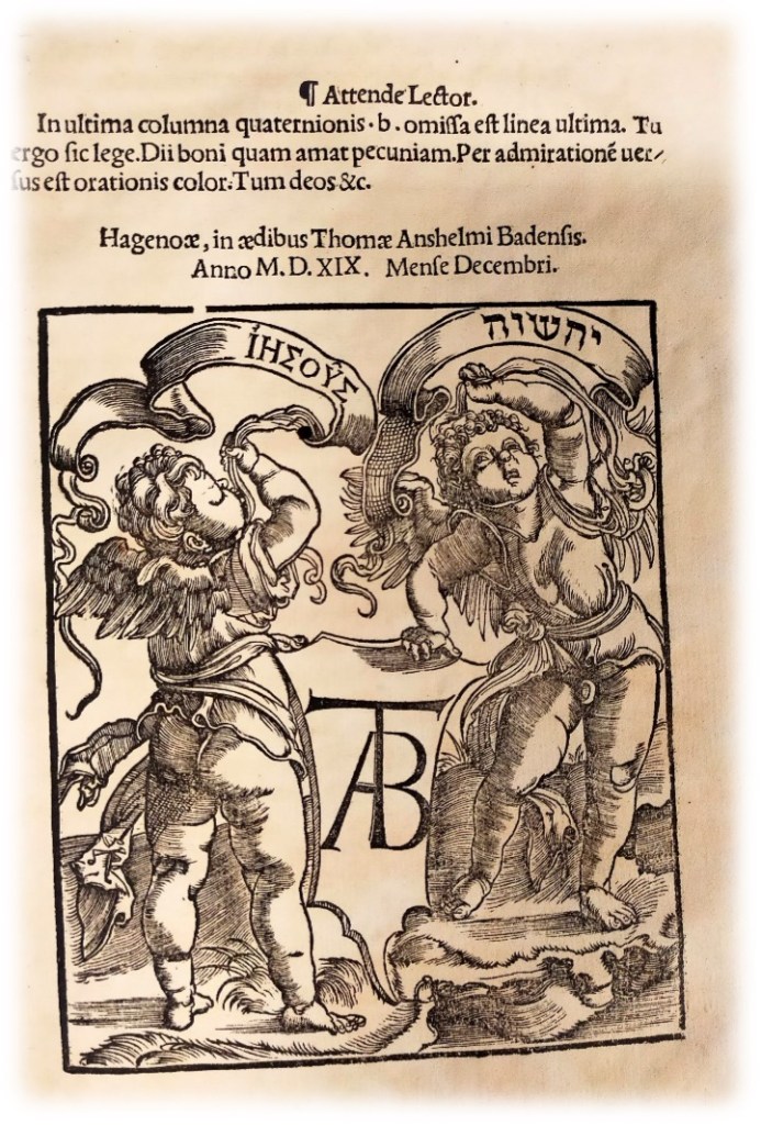 Fig. 2 : marque typographique de Thomas Anshelm utilisée à la fin du deuxième ouvrage.