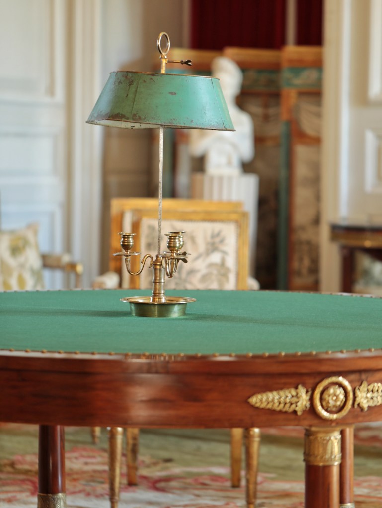 Au centre du grand salon est installée une table tout à fait unique. De forme ronde, recouverte d’un tapis de jeu, cette table semble être une simple table de jeux de cartes comme il s’en trouve beaucoup dans les salons du XIXe siècle.