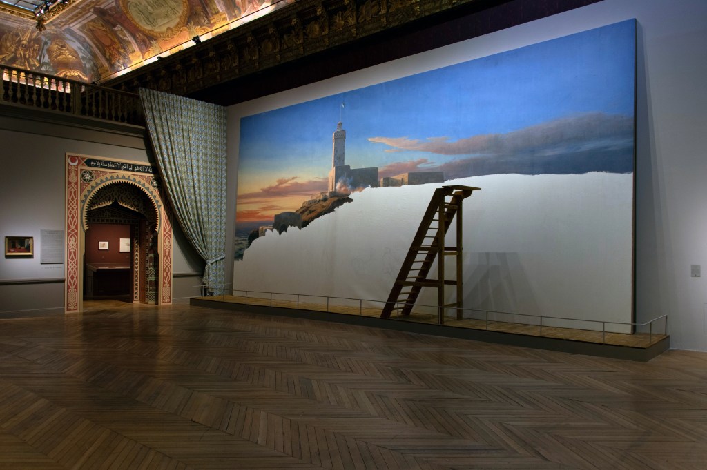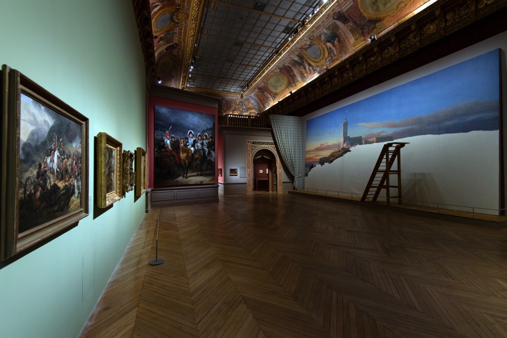 Vue de l’exposition « Horace Vernet » dans les Salles d’Afrique du château de Versailles, avec La Prise de Tanger, Horace Vernet, 1847, huile sur toile, château de Versailles