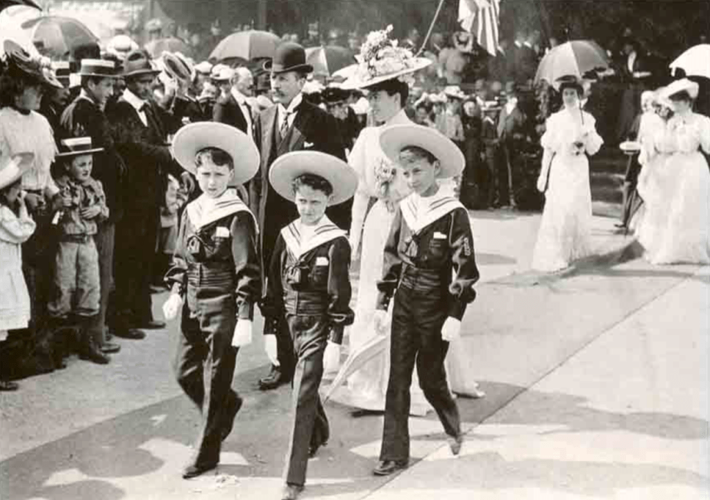 Cette photo montre Eugène et Antoinette Schneider et leur trois fils en 1905. On y voit l’importance de la famille. Malgré son côté formel, cette photo est très joyeuse et vivante !