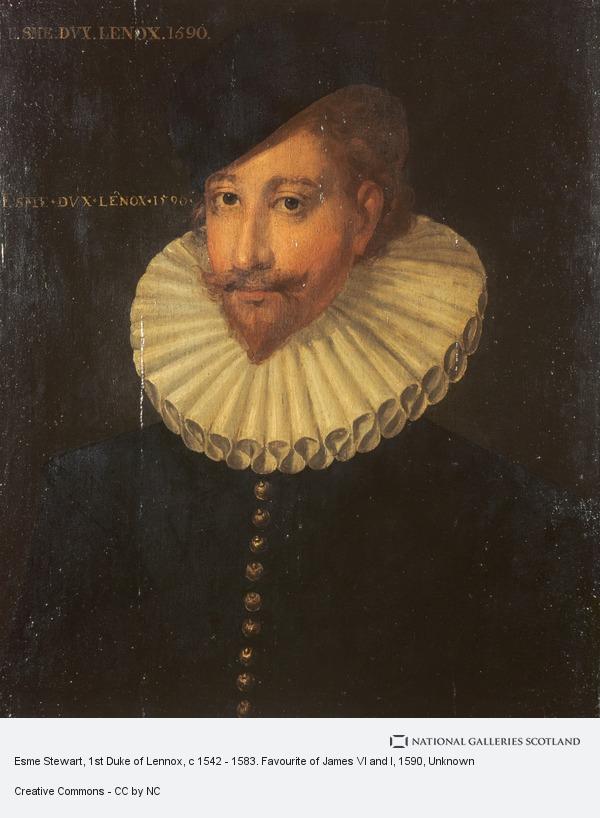La seconde illustration est un portait de Jacques VI d’Écosse, réalisé aux alentours de l’année 1585 par l’artiste néerlandais Adrian Vanson, portraitiste officiel de la cour du roi écossais. On réalise grâce à ce portrait, datant d’uniquement deux ans après le décès d’Esmé, la jeunesse de Jacques lors du séjour de son cousin en Écosse. En comparaison avec les portraits du roi dans sa jeunesse, on peut remarquer des habits plus éclatants de couleur, peut-être inspirés de la mode française importée par son favori.