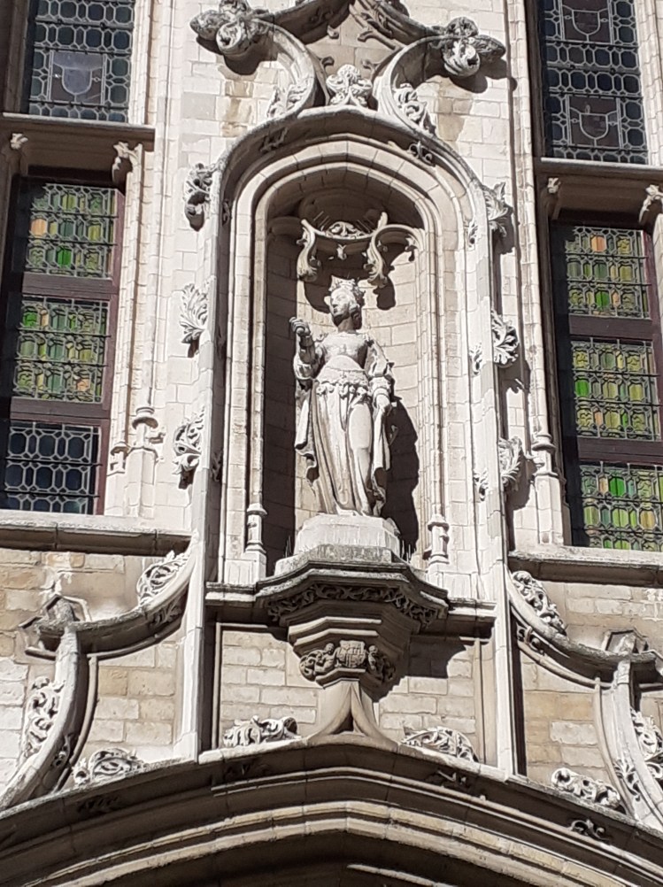 Standbeeld van Margaretha van York in de nis van de binnenplaats