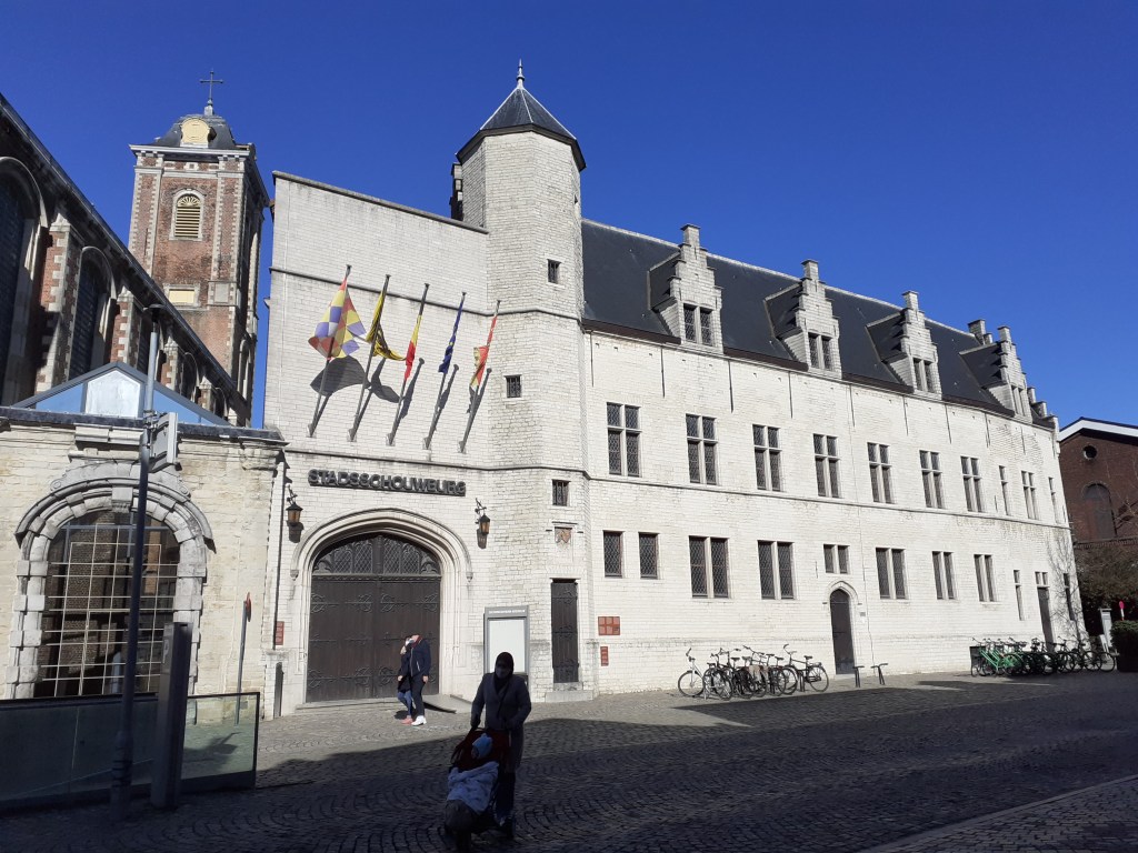 Dans l’effort continu de Maximilien pour asservir les villes, il était toujours supporté et stimulé par Marguerite d’York. Après la mort de son mari, celle-ci se retira pendant peu de temps à Oudenaarde, en Flandre, pays plus hostile à la dynastie. Elle avait reçu cette ville en douaire et elle y était protégée par un contingent de 300 soldats anglais. Ils devaient s’assurer en même temps que la ville payait pour l’entretien de Marguerite… Probablement à cause de la menace française et du fait que les villes insurgées lui avaient enlevé ses droits de douaire en Flandre, Marguerite changea de résidence. Elle s’installa à Mechelen/Malines, située à 25 kms de Brussel/Bruxelles. Cette ville avait un port de marée sur la rivière Dyle. C’était une seigneurie en plein milieu du duché de Brabant. Elle dépendait uniquement du souverain, qui était à l’époque la duchesse Marie de Bourgogne, avec son mari Maximilien d’Autriche, roi de Rome et futur souverain du Saint-Empire. Par voie fluviale, Malines était aussi en liaison avec Leuven/Louvain, ville d’université, et avec Brussel/Bruxelles, la capitale. Malines était aussi le siège du Grand Conseil (Parlement) de Malines, l’institution juridique la plus haute des « Pays de par-deçà ». En même temps, la ville était un centre très renommé pour ses fonderies de bronze qui produisaient des cloches et surtout… des canons ! Aucun adversaire de la ville n’oserait lever le doigt contre elle, parce que, si on attaquait Malines, on attaquait directement le souverain. On allait réfléchir trois fois avant d’entamer un siège contre une ville qui portait comme devise « In Trouwe Vast » (« Toujours loyal et fidèle »), sous-entendu « au souverain ». Les Malinois n’allaient pas tuer, ou faire tuer, la poule aux œufs d’or ! Dans notre ville de Mechelen/Malines, Marguerite d’York se sentait à l’aise. Elle prit même la peine d’apprendre notre langue thyoise (Dietse taal), le néerlandais de l’époque, qui à vrai dire ne différait pas beaucoup de l’anglais de Chaucer.