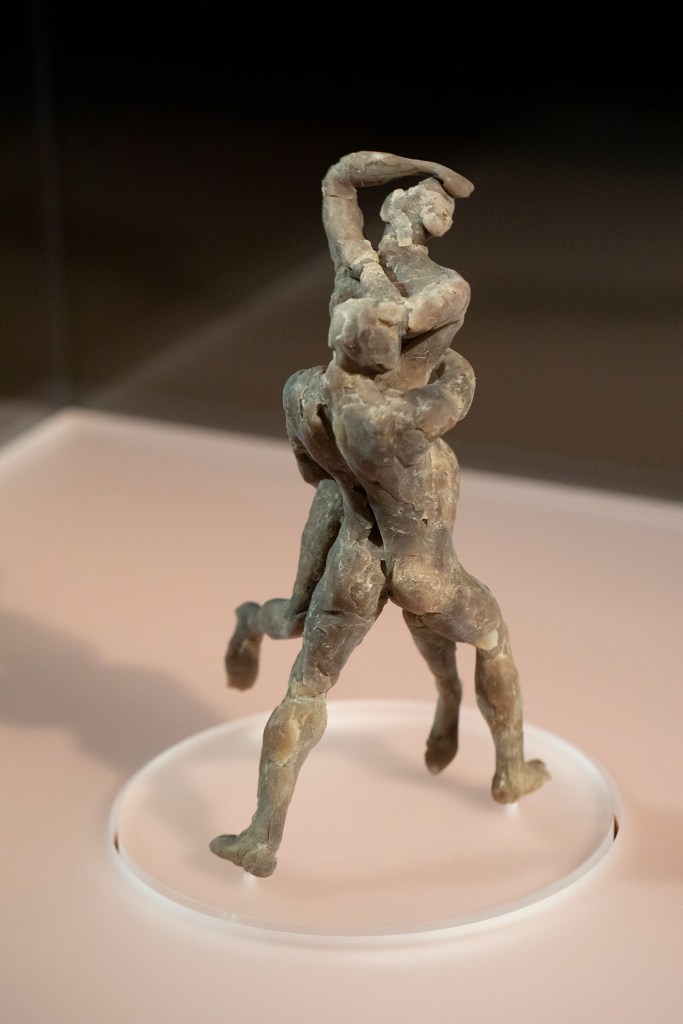 The second is a photograph of the wax figurines we commissioned for the exhibition from the contemporary artists Andrew Lacey and Sîan Lewis. Although none of Poussin’s original figurines survive, we know from visitors to his studio in the 17th century that he made models out of beeswax, about the size of his palm, which he used to choreograph his compositions.