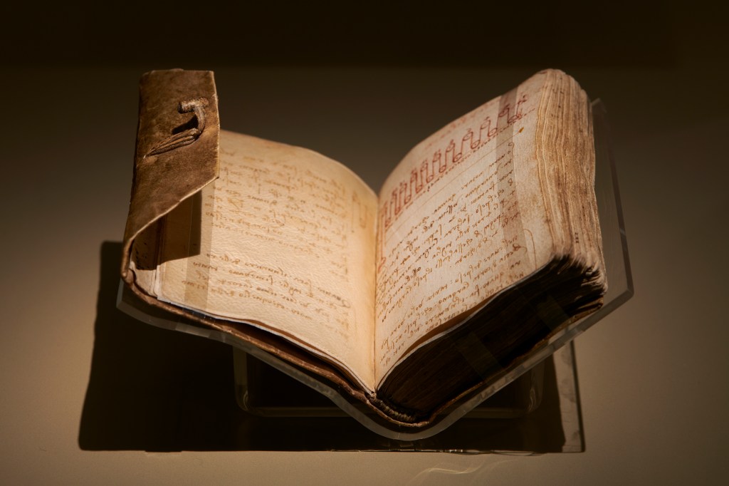 A variety of observations often converge on a single page, alongside further notes, diagrams and rough drawings that can sometimes only be fully understood by turning them around. Much of the text is in mirror writing, from right to left. It has been suggested this was, perhaps, a way for the artist to encode or make secret the text. In reality, it may simply have been easier for Leonardo, who was left-handed, to write this way. […]