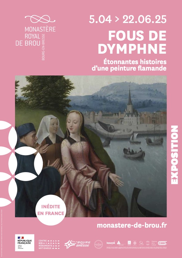 Le monastère royal de Brou présente du 5 avril au 22 juin 2025 l’exposition « Fous de Dymphne, étonnantes histoires d’une peinture flamande ». Pour la première fois en France, le public pourra découvrir les éléments d’un retable monumental du début du XVIe siècle. Restauré avec soin pendant trois ans par La Fondation Phœbus (Anvers – Belgique), ce chef-d’œuvre a été réalisé par le petit-fils du célèbre maître flamand Rogier Van der Weyden. À travers huit panneaux peints, l’exposition raconte l’histoire fascinante d’une jeune irlandaise qui lutte pour sa liberté. Les installations vidéo qui complètent ce parcours dévoilent le destin mystérieux de cette peinture jusqu’à son incroyable restauration et l’univers foisonnant de la Renaissance flamande, dont le monastère royal de Brou est un précieux témoin.