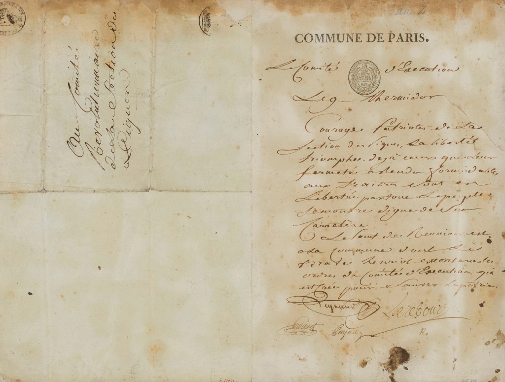 Appel à la section des Piques rédigé à l’hôtel de ville dans la nuit du 9