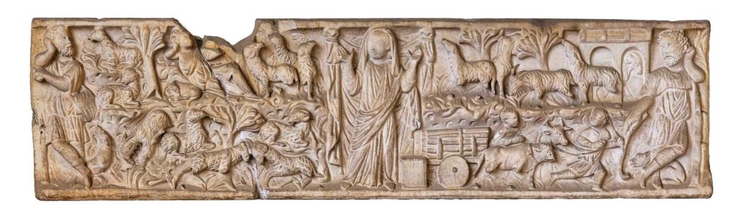 Fronte di un sarcofago paleocristiano a tema pastorale
