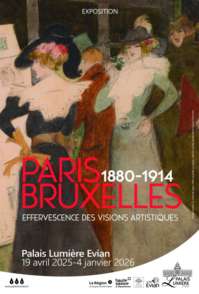 1882 marque le début de la période d’expansion d’Évian qui passe d’une petite ville haut-savoyarde à une ville-monde où se croisent et se côtoient nombre d’artistes tels que Marcel Proust, Gustave Eiffel, les frères Lumières ou encore Anna de Noailles. Des personnalités telles que les maharadjahs de Kapurthala et Baroda (Inde) y séjournent en 1912 et 1913. Le grand collectionneur lyonnais, le Baron Jonas Vitta, achève la construction de sa villa La Sapinière en 1896. Mécène et ami des plus grands artistes de son temps comme Auguste Rodin, Jules Chéret, Albert Besnard, Félix Bracquemond ou Alexandre Charpentier, il leur confie la décoration de cette grande demeure d’inspiration palladienne avec campanile et terrasses. C’est donc tout naturellement que l’exposition Paris-Bruxelles, 1880-1914. Effervescence des visions artistiques trouve sa place au Palais Lumière, lieu emblématique de cette ville lacustre chargée d’histoire.
