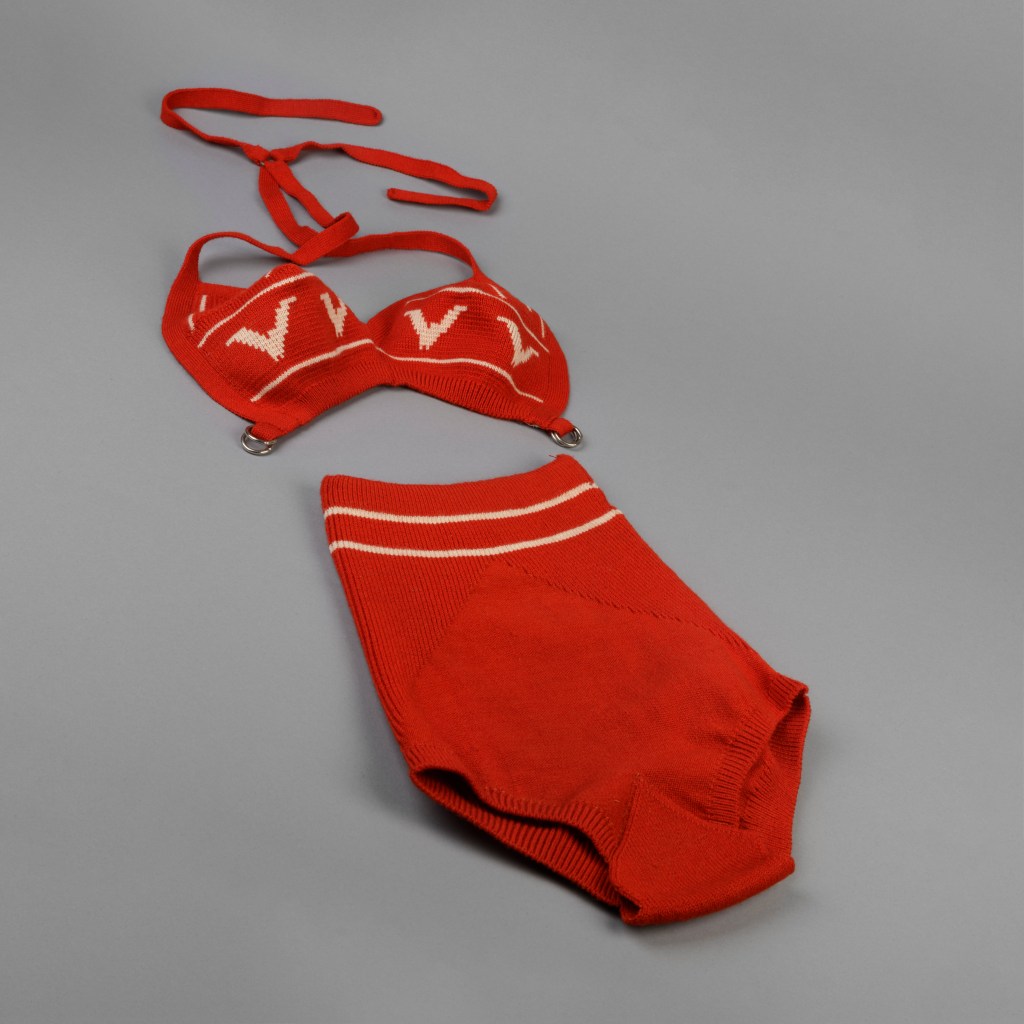 D’un seul tenant depuis le début du XXe siècle, le maillot de bain féminin se scinde enfin en deux dans les années 30. En laine, composé d’un soutien-gorge et d’une large culotte montante, il ne dévoile cependant pas encore le nombril. Ce sera chose faite en juillet 1946 : avec son Bikini (en référence à l’atoll du Pacifique où viennent de se dérouler des essais nucléaires américains), Louis Réard atomise les gardiens de la pudeur ! Réduit à de simples triangles retenus par des ficelles, le sulfureux maillot, bien que frappé d’interdit sur certaines plages européennes, fait rapidement des adeptes. Consacré par Brigitte Bardot en 1953, il reste depuis, la pièce iconique de la garde-robe estivale.