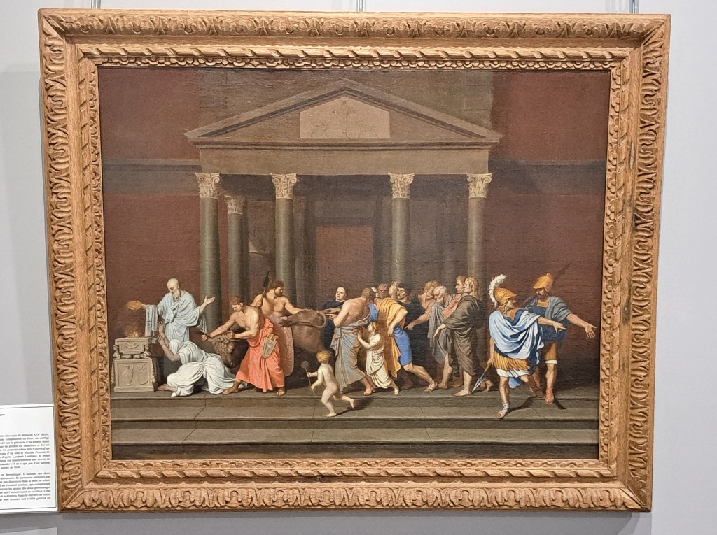 Après avoir travaillé dans l’atelier de Douffet, le jeune Bertholet séjourna quelques années à Rome, autour de 1640, et il travailla là dans le cercle du grand peintre classique français Nicolas Poussin, qui le marqua profondément. Après un séjour à Paris, où son talent fut rapidement reconnu, Bertholet Flémal rentra à Liège en 1646 et il gagna très vite le firmament de la peinture locale, grâce à la modernité de ses conceptions, qui perdurèrent à travers l’art de ses divers élèves, tels Jean-Guillaume Carlier, Gérard de Lairesse ou Englebert Fisen. Bertholet Flémal ayant terminé son existence comme chanoine de la collégiale Saint-Paul, sa production de scènes mythologiques – et surtout de bacchanales – a été longtemps oubliée, comme si elle était incompatible avec son statut. Or, ses œuvres historiques, mythologiques et allégoriques constituent un pan essentiel d’un catalogue comptant à ce jour une bonne soixantaine de tableaux. L’exposition regroupe un tiers de sa production picturale connue. Elle permet de suivre l’évolution du peintre, depuis sa production romaine autour de 1640, illustrée ici par une Scène de sacrifice, jusqu’à son ultime tableau et l’un de ses plus grands chefs-d’œuvre : l’Invention de la Sainte Croix, actuellement exposée dans le collatéral nord de la cathédrale.