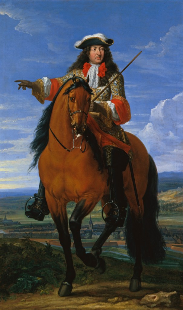 Le prince est souvent représenté en train d’exécuter une pesade. Cette figure de dressage demande un apprentissage et une technique approfondie. Une bonne pratique équestre est en effet vue comme un symbole d’aptitude au bon gouvernement, et la figure du cheval s’illustre comme une composante primordiale de l’image diffusée par l’Ancien Régime. Louis XIV s’en sert sur un plan moral comme symbolique : c’est sous son règne que la figure équestre est la plus utilisée pour glorifier le pouvoir royal, sa politique et ses actions.