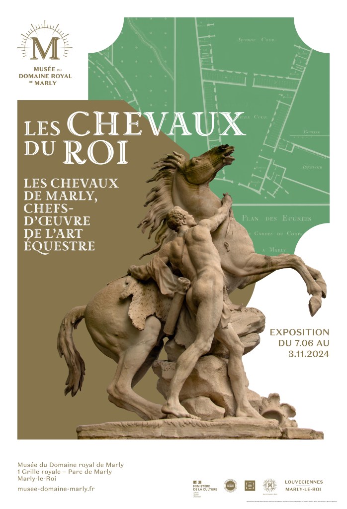 Le musée du Domaine royal de Marly présente, à l’occasion des épreuves équestres des Jeux Olympiques et Paralympiques de Paris 2024, une exposition originale consacrée à la place du cheval au Domaine de Marly, de Louis XIV à la Révolution. Déployée des espaces intérieurs du musée jusqu’au parc, l’exposition retrace la riche histoire équestre de Marly et souligne ainsi l’empreinte laissée par le cheval dans ce lieu emblématique. Une centaine d’œuvres, d’accessoires équestres et de documents provenant de prestigieuses collections publiques et privées, illustrent les divers aspects de sa présence au sein du domaine royal à travers ses usages, ses représentations, les espaces et les bâtiments, au fil d’un parcours en 7 étapes : « Le cheval et la chasse », « Promenade et circulation », « Les bâtiments équestres. Construire pour les chevaux », « Le cheval de guerre », « L’aventure des Chevaux de Marly de Coysevox à Coustou », « Le cheval comme emblème », « Les Chevaux de Marly et le Grand abreuvoir, vestiges prestigieux du domaine de Marly ».