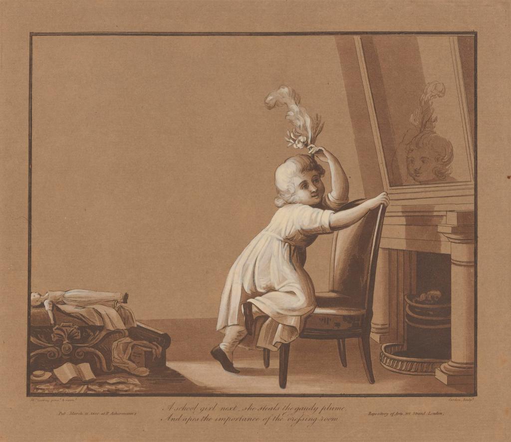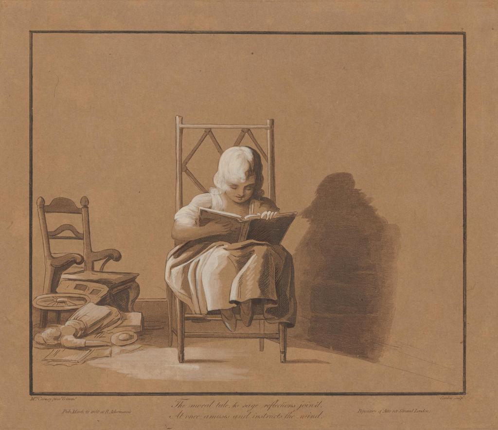 En 1800, Ackermann publia deux albums de Maria Cosway, intitulés A Progress of Female Virtue et A Progress of Female Dissipation. Gravés par Antoine Cardon d’après les dessins de Cosway, ces recueils décrivent respectivement le chemin à suivre pour devenir une jeune femme vertueuse et celui à réprouver pour échapper à la vacuité d’une existence superficielle. Cosway s’inscrivait ainsi dans la tradition littéraire des « livres de conduite ». Deux personnalités aussi différentes que Madame de Genlis et Mary Wollstonecraft, dont les travaux sur l’éducation précédèrent ceux de Cosway, étaient des références en la matière.