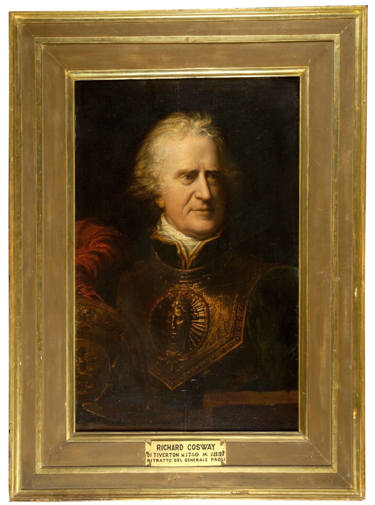 En 1798, Richard Cosway expose à la Royal Academy (n°71) un portrait en demi-buste de Pascal Paoli (fig. 1). Le général, regard volontaire, porte une armure avec l’égide à tête de méduse. Il tient un casque empanaché de plumes écarlates.