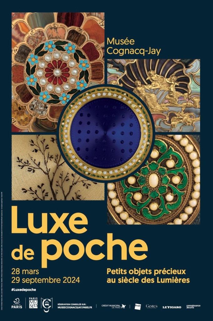 L’exposition Luxe de poche au musée Cognacq-Jay présente une collection exceptionnelle de petits objets précieux et sophistiqués, en or, enrichis de pierres dures ou de pierres précieuses, couverts de nacre, de porcelaine ou d’émaux translucides, parfois ornés de miniatures. Les usages de ces objets varient, mais ils ressortent tous des us et coutumes d’un quotidien raffiné, signe de richesse, souvenir intime. Au siècle des Lumières comme aux suivants, ils suscitent un véritable engouement en France d’abord puis dans toute l’Europe. Luxe de poche a pour ambition de renouveler le regard que l’on porte sur ces objets, en adoptant une approche plurielle, qui convoque à la fois l’histoire de l’art et l’histoire de la mode, l’histoire des techniques, l’histoire culturelle et l’anthropologie en faisant résonner ces objets avec d’autres œuvres : des accessoires de mode, mais aussi les vêtements qu’ils viennent compléter, le mobilier où ils sont rangés ou présentés et enfin des tableaux, dessins et gravures où ces objets sont mis en scène. Ce dialogue permet d’envisager ces objets dans le contexte plus large du luxe et de la mode au XVIIIe et au début du XIXe siècle. Point de départ de cette nouvelle exposition, la collection remarquable d’Ernest Cognacq est enrichie de prêts importants – d’institutions prestigieuses comme le musée du Louvre, le musée des Arts décoratifs de Paris, le Château de Versailles, le Palais Galliera, les Collections royales anglaises ou le Victoria and Albert Museum à Londres et des collections particulières – afin d’offrir une nouvelle lecture de ces accessoires indispensables du luxe.