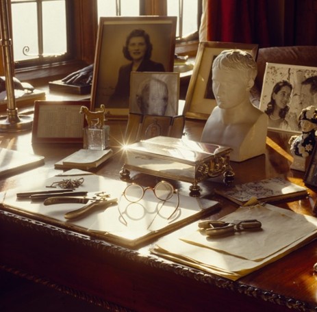 The Napoleonic theme is unavoidable in Lady Churchill’s bedroom where in the two alcoves are a series of porcelain figures depicting officers and cavalrymen of Napoleon’s imperial army as well as the great man himself with his characteristic arm outstretched pose. Given the immaculate nature of the spaces designed by Lady Churchill, this set of figures does seem slightly out of place. Manufactured at the Postchappel factory in Dresden, established by Carl-Johann Gottlob Thieme in the 1860s, beginning as a small antique shop. Specialising in porcelain, the marks on Lady Churchill’s set indicate a rough date of production of between 1900 and 1950. Their passing into the hands of the Churchills is quite tragic. They once belonged to a close friend and confidante of Churchills, Brendan Bracken. Bracken was minister of information during the Second World War and was a frequent visitor to the Churchill’s at Chartwell. He passed away aged only 57 but had one last treat for Lady Churchill. In one of her letters, she writes: