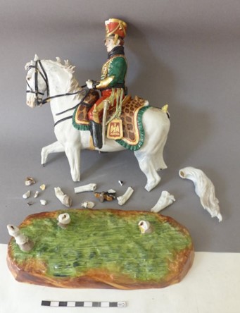 These have remained a crucial part of our story at Chartwell, and we continue to look after this set. After a noticeable decline in the condition of one of the horsemen, it was taken away for essential conservation. It was deconstructed and a trained ceramic specialist put the pieces of the horsemen back together.