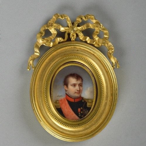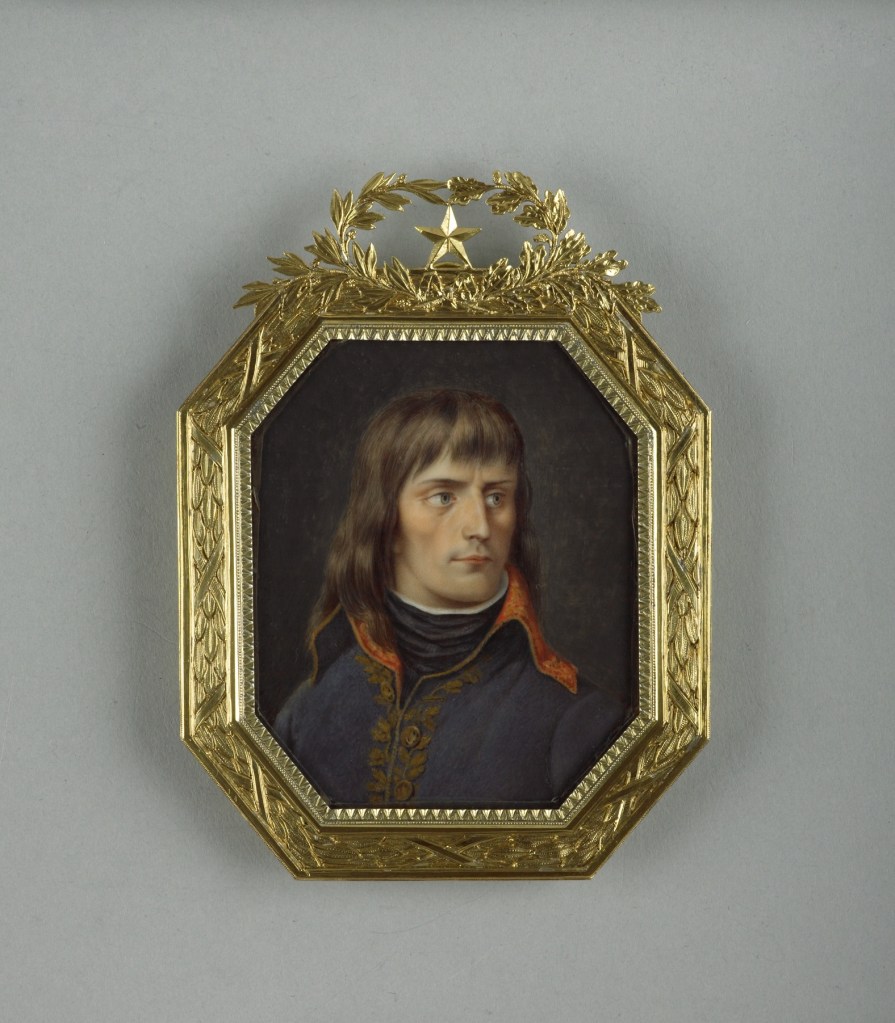 Commençons par une miniature assez originale, puisqu’elle est la seule, à la Wallace Collection, qui représente le jeune Napoléon Bonaparte, alors général de la Révolution. Rappelons que c’est le 22 décembre 1793, peu après la fin du siège de Toulon, où il s’est fait remarquer une première fois pour son génie militaire contre les Anglais, que Napoléon est nommé général de brigade. Deux ans plus tard, le 16 octobre 1795 (24 vendémiaire an IV), il est promu général de division suite à son intervention pour mater l’insurrection royaliste du 13 vendémiaire. Encore quelques jours et, le 25 octobre, il devient le tout puissant général en chef de l’armée de l’Intérieur. Plus tard, il est général en chef de l’armée d’Italie (1796-1797), puis de celle d’Orient (campagne d’Égypte, 1798-1799). Il prend finalement le pouvoir en France à l’occasion du coup d’État du 18 brumaire an VIII (9 novembre 1799) et dirige le pays avec le titre de Premier consul.