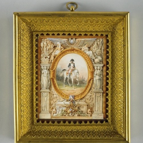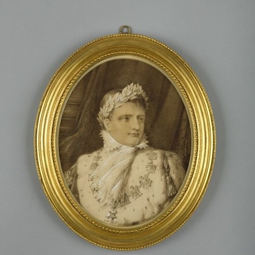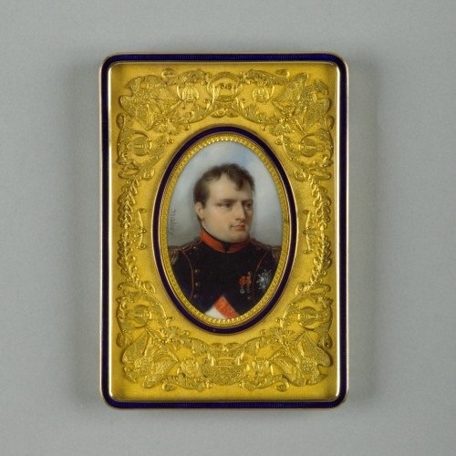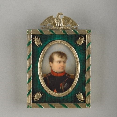 Cinq ans plus tard, le Premier consul est suffisamment puissant sur la scène internationale et à l’intérieur de la France pour imposer un régime monarchique à la République : le 18 mai 1804, il devient l’empereur des Français. Il est couronné le 2 décembre, à la cathédrale Notre-Dame de Paris, en présence du pape. Ce nouveau titre et la cérémonie parisienne sont aussi affaire d’image et de communication. Pendant les dix années de son règne, son visage est reproduit à l’infini, sur les pièces de monnaie, dans le marbre des statues, sous le pinceau des grands peintres, pour de gigantesques tableaux d’apparat, mais surtout pour d’innombrables miniatures, qui se répandent dans l’Europe entière et font la promotion du conquérant. Parmi les douze qui sont conservées dans les collections de sir Richard Wallace, certaines le représentent en uniforme de colonel de la Garde, sa tenue quotidienne, d’autres, plus rares, avec tous les attributs du pouvoir impérial.
