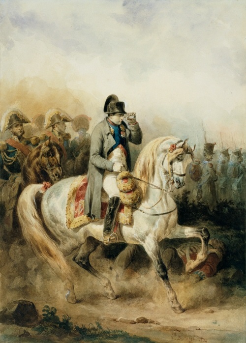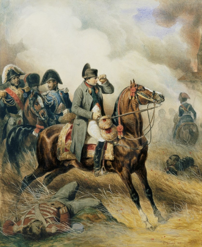 Le musée conserve également deux versions d’un portrait d’Hippolyte Bellangé, représentant Napoléon à cheval, regardant à travers une (courte) longue-vue, et chevauchant à proximité du cadavre d’un soldat, a priori britannique. Une bonne partie de l’œuvre de Bellangé est consacrée à l’épopée napoléonienne (la Moskova, Wagram, Friedland, La Corogne, le retour de l’île d’Elbe), mais aussi aux exploits du petit-neveu de Napoléon, l’Empereur Napoléon III (l’Alma, Magenta).