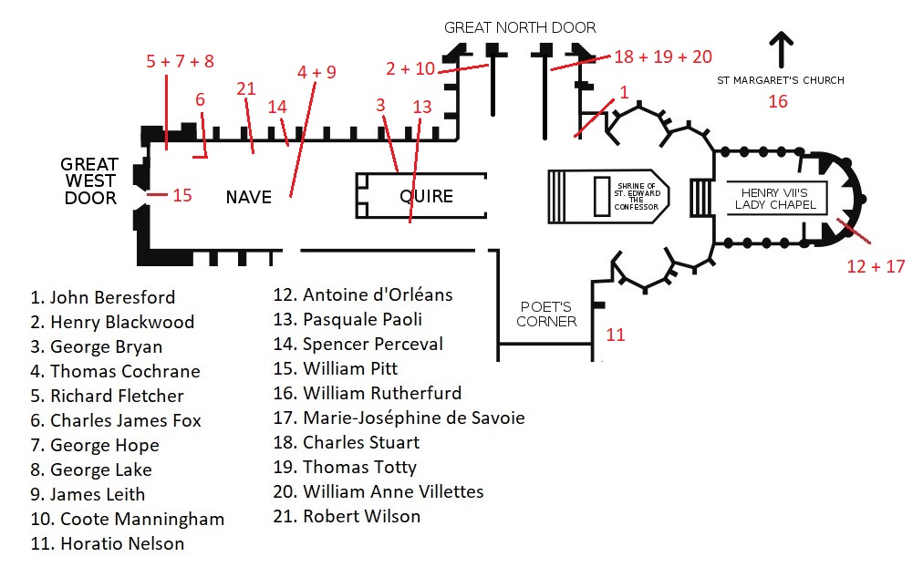 Toutefois, Napoléon est bien présent dans cette église royale. Ce « Parcours Napoléon à l’abbaye de Westminster » vous permettra de découvrir une vingtaine de personnages qui se sont opposés, d’une manière ou d’une autre, au général Bonaparte, au Premier consul ou à l’empereur Napoléon Ier. La plupart sont des officiers de la Royal Navy ou de la British Army, souvent parmi les plus gradés. On croisera également quelques politiciens, notamment les grands rivaux qu’étaient William Pitt le Jeune et Charles James Fox. Enfin, on tombera sur quelques personnages au destin plus particulier : un prince d’Orléans, la dernière reine de France et le Père de la Nation corse.
