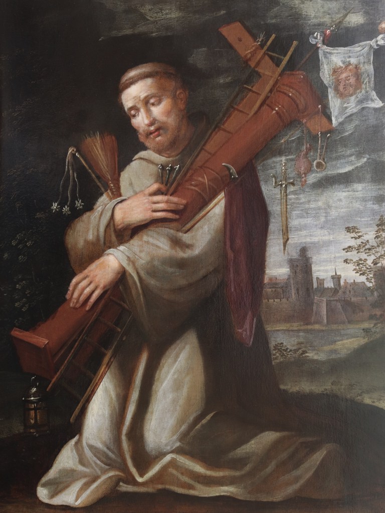 Ce tableau de saint Bernard de Tiron est une huile sur bois datant de la première moitié du XVIIe siècle. Il est actuellement conservé au Musée du Collège royal et militaire de Thiron-Gardais (en tant que prêt du centre hospitalier d’Abbeville). Sur le panneau, saint Bernard de Tiron (l’orthographe « Thiron » n’étant que postérieure) est représenté agenouillé dans un paysage et porte dans ses bras les instruments de la Passion. La scène se passe à l’orée d’une forêt. Une lanterne est posée au sol. Une ville avec des remparts est visible à senestre en arrière-plan d’une étendue d’eau.