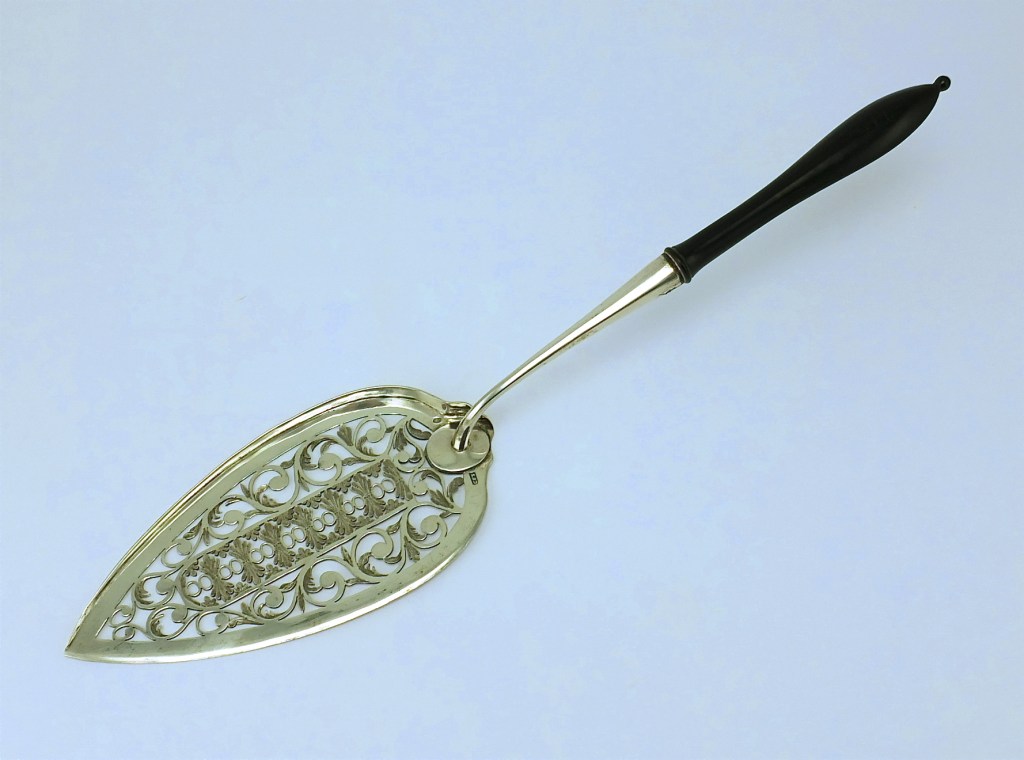 Argent repercé, ciselé au trait et au mat, manche en bois noirci