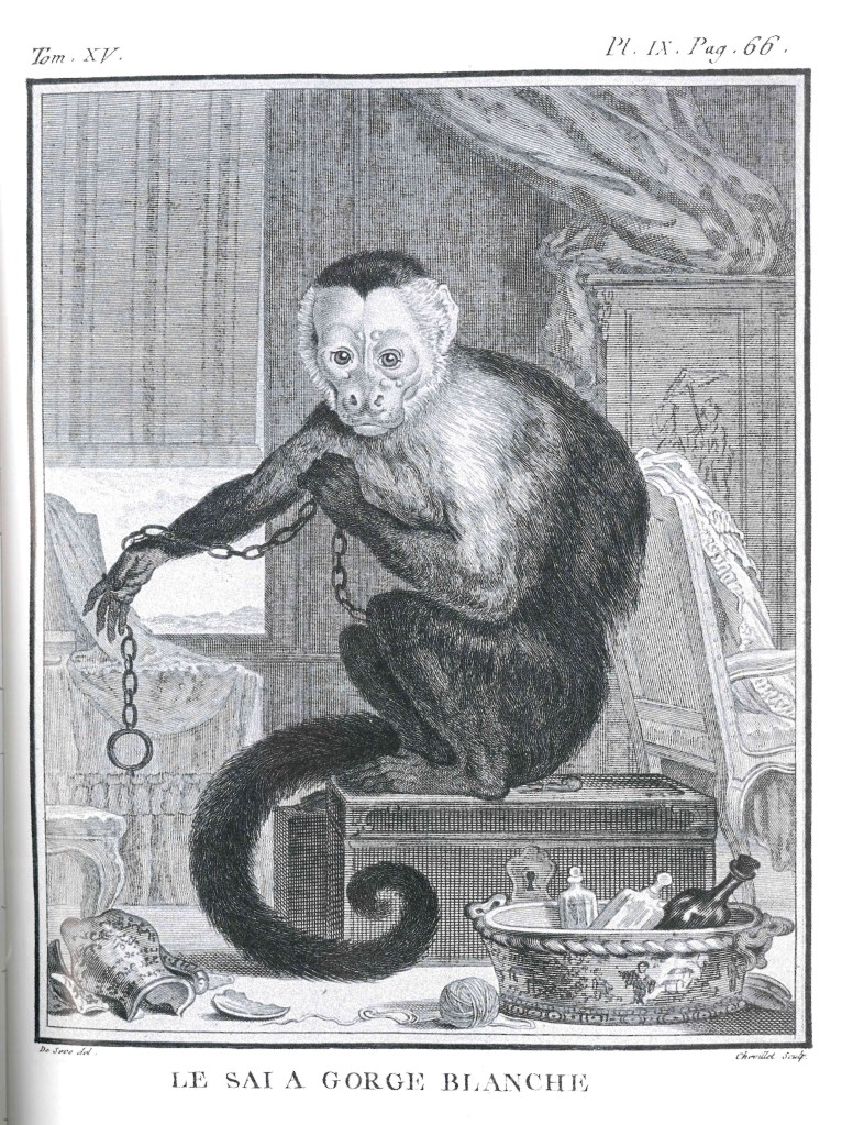 Les singes, en particulier l’orang-outan et le chimpanzé, sont au cœur de discussions animées au Siècle des Lumières. Leur apparence, leur tempérament et leurs capacités physiques intriguent les savants qui peinent à comprendre leur place dans la Nature, surtout en rapport avec l’Homme. Ceux-ci sont vus à la fois comme le plus animal des êtres humains et comme le plus humain des animaux. Comme le fait entendre Buffon : « À l’exception de l’âme, il (le singe) ne lui manque rien de ce que nous avons. ». Cette ambiguïté fascine et se retrouve à l’origine de nombreuses représentations, notamment dans le domaine de l’art décoratif où les « Singeries » prennent possession des murs et des tapisseries. Dans l’Histoire naturelle, c’est néanmoins le cheval qui est placé au plus près de l’homme. Le singe, lui, est traité de manière remarquable en dernier dans les Quadrupèdes. Pour Buffon, la ressemblance physique entre l’homme et le singe est trompeuse. Celui-ci fait pâle figure en comparaison de bien d’autres espèces plus sophistiquées. Sa position dans le quatorzième et quinzième volume permet alors un énième pied de nez aux classificateurs que Buffon méprise, bien qu’on le considère lui-même plus tard comme un prédécesseur de Darwin et de sa théorie de l’évolution.